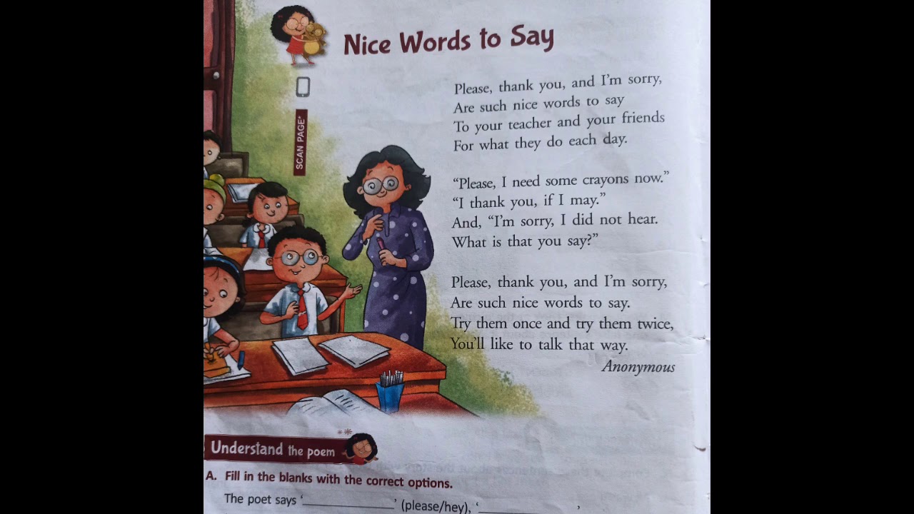 CLASS 3 ENGLISH POEM NICE WORDS TO SAY(POEM EXPLAINED WITH BACK